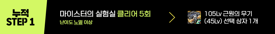 STEP 1 : 마이스터 실험실 클리어 5회 ( 난이도 노멀 이상 )