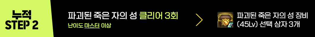STEP 2 : 파괴된 죽은 자의 성 클리어 3회 ( 난이도 마스터 이상 )