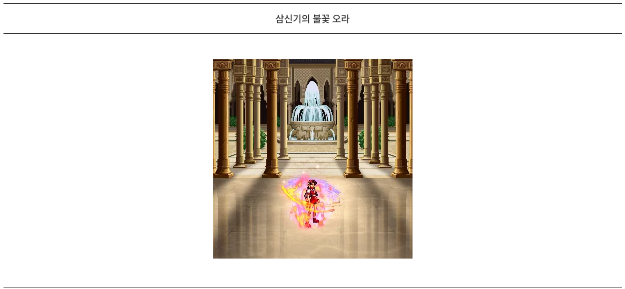 오라 변경권을 통해 특정 확률로 "삼신기의 불꽃 오라"를 획득할 수 있습니다.
