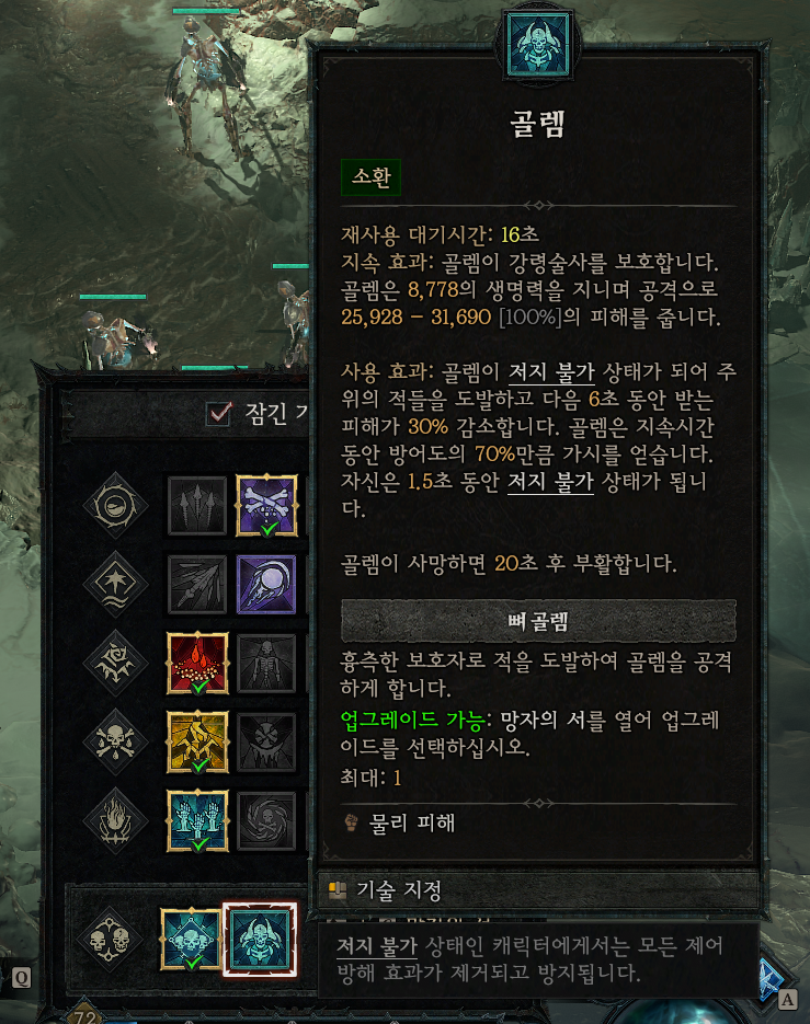 앞서 말한것처럼 강령술사는 직업 퀘스트 완료한 후에 골렘을 사용할 수 있게 됩니다.