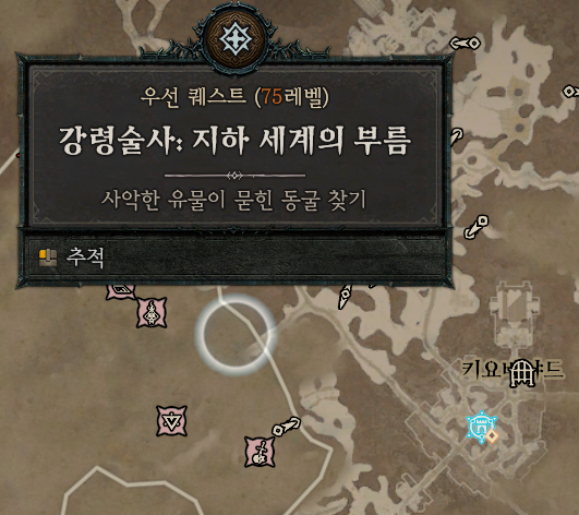 15레벨이 되면 아래처럼 "강령술사 : 지하 세계의 부름" 이라는 퀘스트를 확인할 수 있습니다.