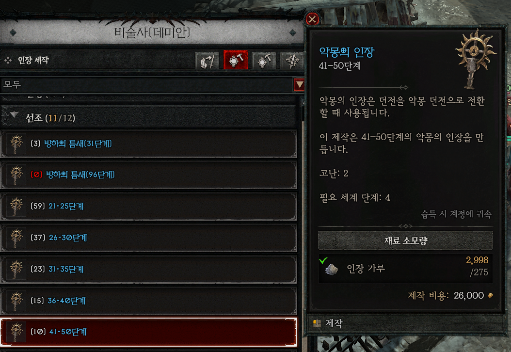 비술사를 통해 41~50단계의 악몽의 인장을 생성해줍시다.