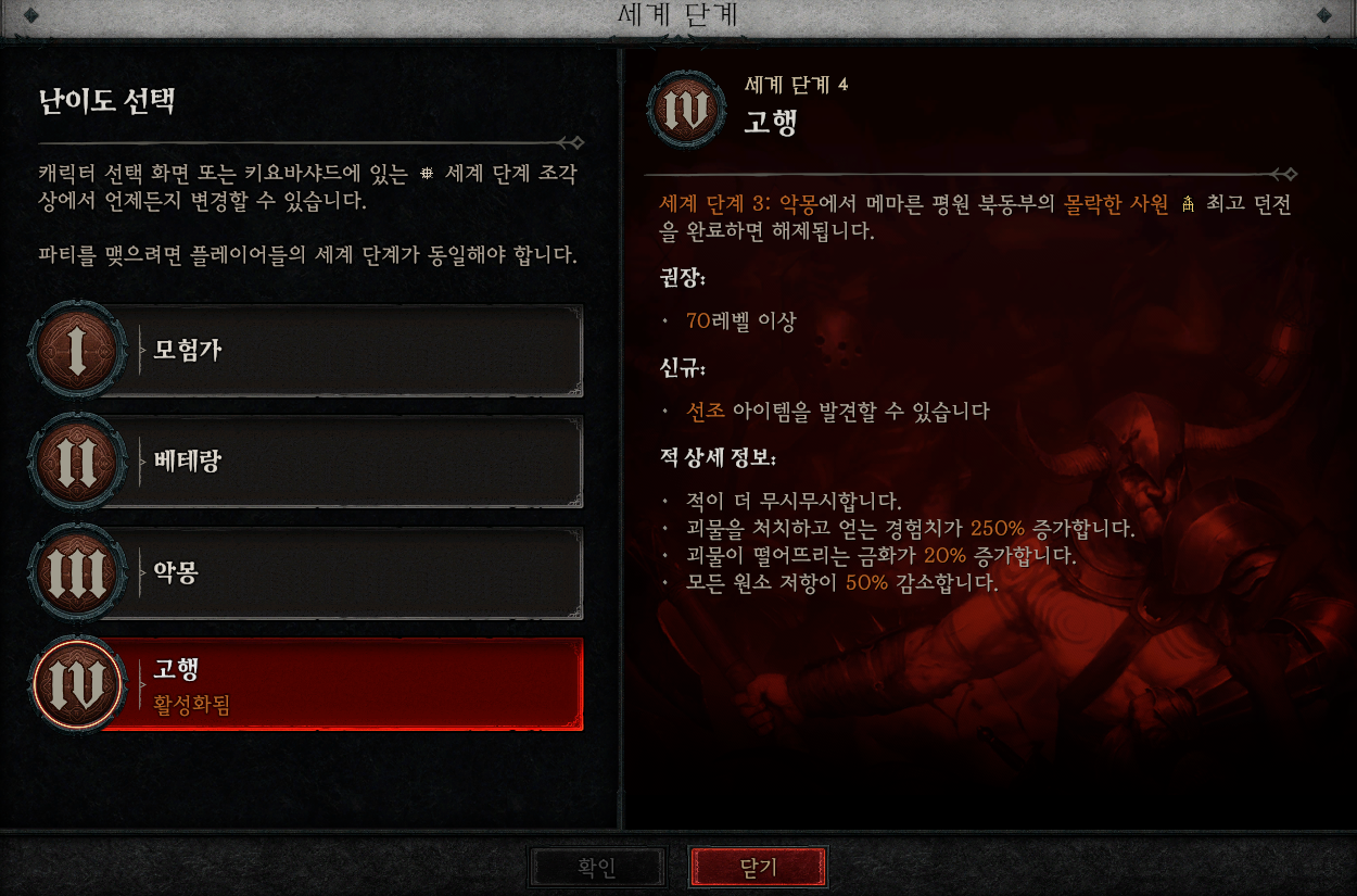 | 디아블로4 시즌4 고행 진입 방법 및 진입 시기 (0) | 2024.05.16 |