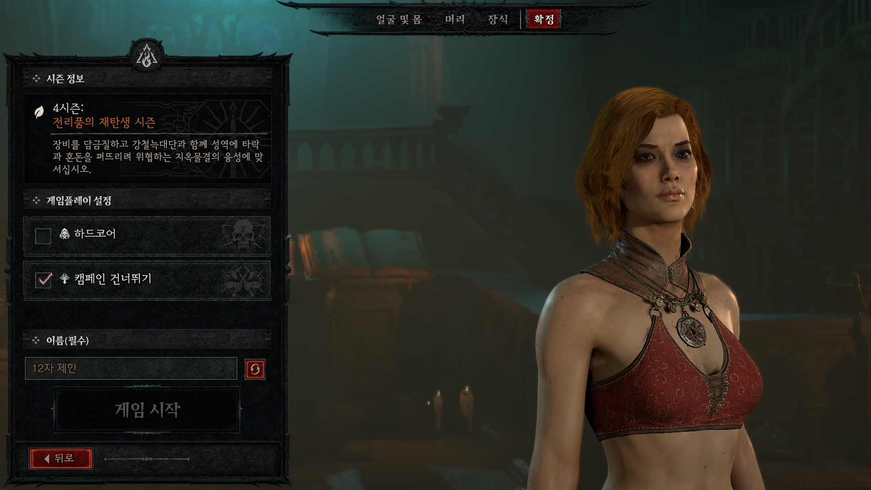 캐릭터 이름을 적기 전에, 캠페인 건너뛰기를 선택해줍니다.