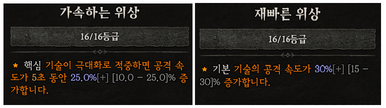 그리고 공격 속도 증가를 위해, "가속"/"재빠른" 위상을 각각의 단검에 각인 시켜줍니다.