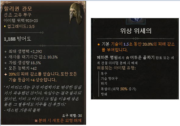 다만, 초반에는 얻기 힘들기 때문에 동일하게 피해감소가 존재하는 위세 위상을 대체제로 사용해도 됩니다.